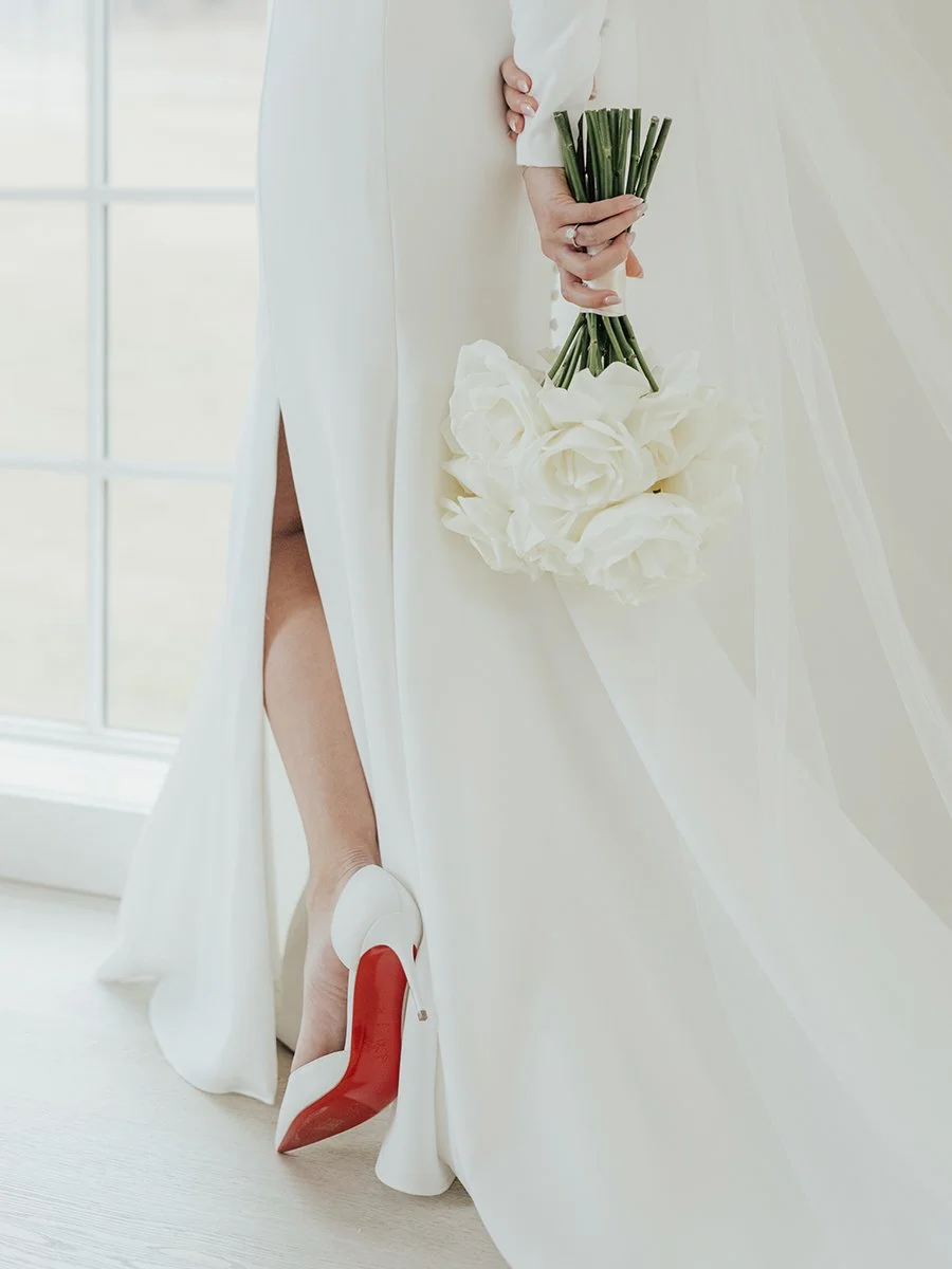 To complement their vision, we designed floral arrangements that embraced a crisp, contemporary feel. Opting for a modern rose-forward design with no greenery, we kept the look clean and refined, allowing the soft, structured beauty of the blooms to shine without visual distraction. The result was an effortlessly elegant atmosphere that perfectly captured Rachel and Mike’s dream wedding aesthetic.